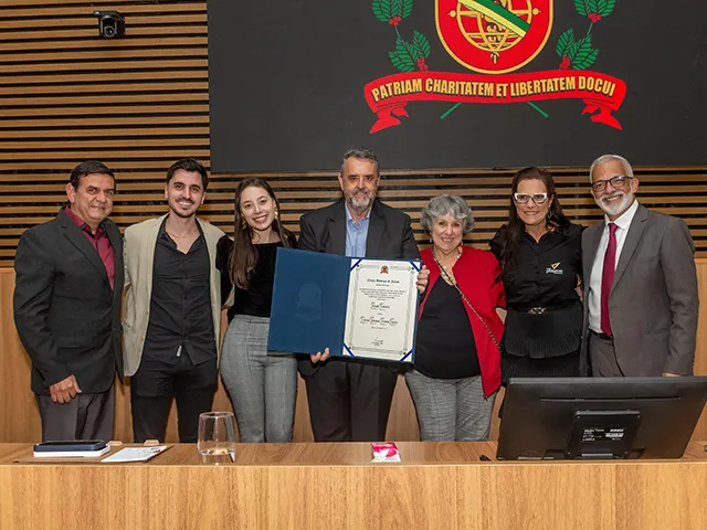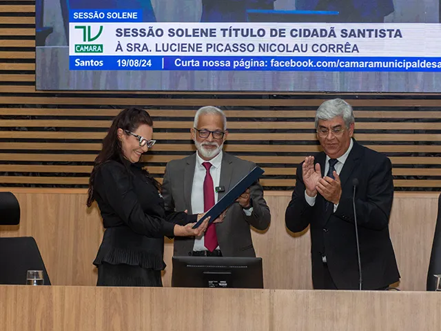 A nossa amada diretora pedagógica Luciene Picasso recebeu a honraria em Sessão Solene realizada na Câmara Municipal de Santos, em referência às mais de três décadas dedicadas à educação da nossa cidade. Essa homenagem foi feita gentilmente proposta a neuropsicopedagoga pelo Sr. Vereador Marcos Libório.